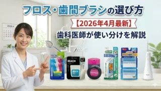 フロス・歯間ブラシ フロス・歯間ブラシの選び方【2026年4月最新】歯科医師が使い分けを解説 糸フロス・ホルダーフロス・ウォーターフロス・歯間ブラシ……どれを選べばいいか迷っていませんか?歯科医師歴13年の院長が、自分でも使っているおすすめ7選と正しい使い分けをわかりやすく解説します。 2026.04.04 歯科医Shin フロス・歯間ブラシ